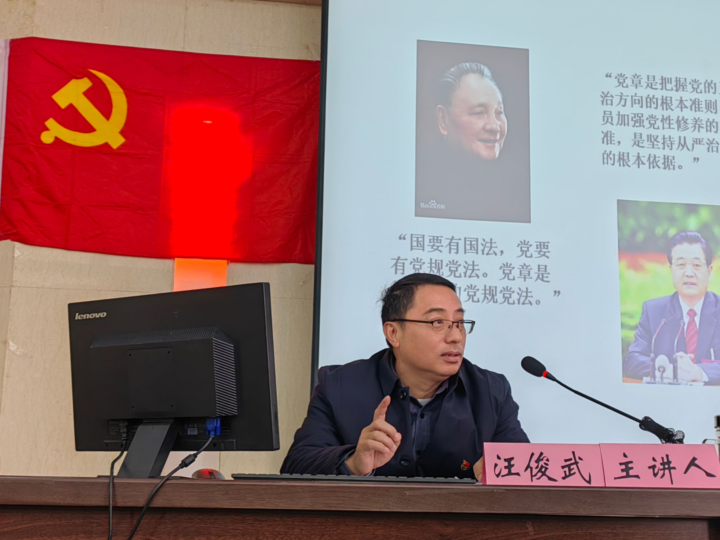 提升理论素养,筑牢思想防线。汪俊武以《学习新党章、践行新思想》为主题,他从“党章是什么、党章的发展历程、二十大党章修改的主要内容、学习党章的态度和方法”等四个方面系统对中国共产党章程进行了解读,重点强调了二十大党章修改的主要内容,讲授了学习党章的态度和方法。希望全体学员们要认真学习新党章,从中汲取信仰力量,争做合格的学生党员。