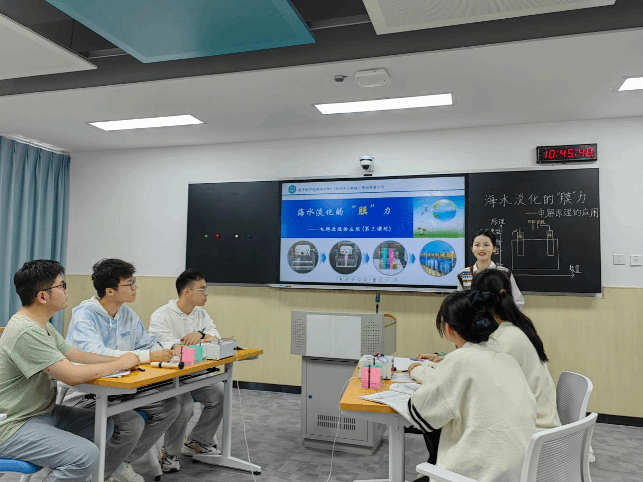 承师范之风,担育人使命。一直以来,化材学院始终以竞赛为驱动力,推动学生教学技能的提升,持续强化师范生的专业素养,为学校“三大振兴行动计划”筑牢根基。自大赛启动以来,学院领导高度重视,积极部署各项培训工作,由化学教育研究所孙影教授、周冬冬老师、程瑶琴老师等组成专业指导团队,对备赛选手从教学设计、板书设计、课件制作、教姿教态等方面,进行了全方位、多层次、深入细致的专业指导。选手也充分利用赛前准备时间完善设计、提高技能,集中进行了近二十次模拟教学训练。在老师们精心指导下,田晓文同学在比赛中沉着冷静,自信大方,展现出了自己的良好教学素养和精神面貌。此前该生在孙影、周冬冬老师指导下,已获得第六届长三角师范生教学基本功大赛一等奖。