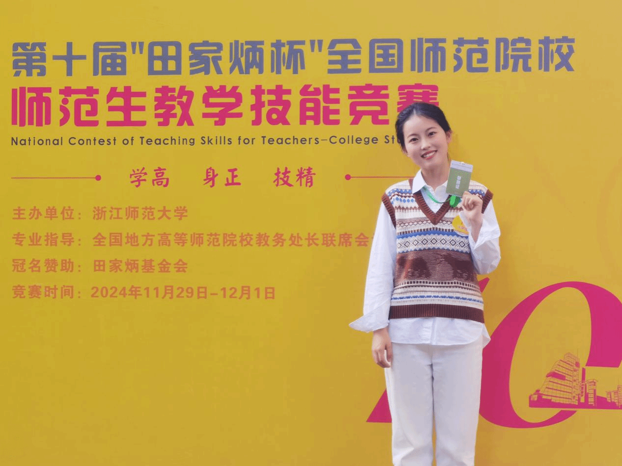 11月30日至12月1日,第十届“田家炳杯”全国师范院校师范生教学技能竞赛在浙江师范大学举行。本届大赛共吸引了来自全国250所学校的1831名选手参赛,参赛院校数与选手数均创历史之最。决赛阶段共有来自156所院校的509名选手到场参赛,经过激烈角逐,化材学院2022级化学(师范)专业田晓文同学荣获高中化学组一等奖。孙影老师、周冬冬老师获评优秀指导教师。