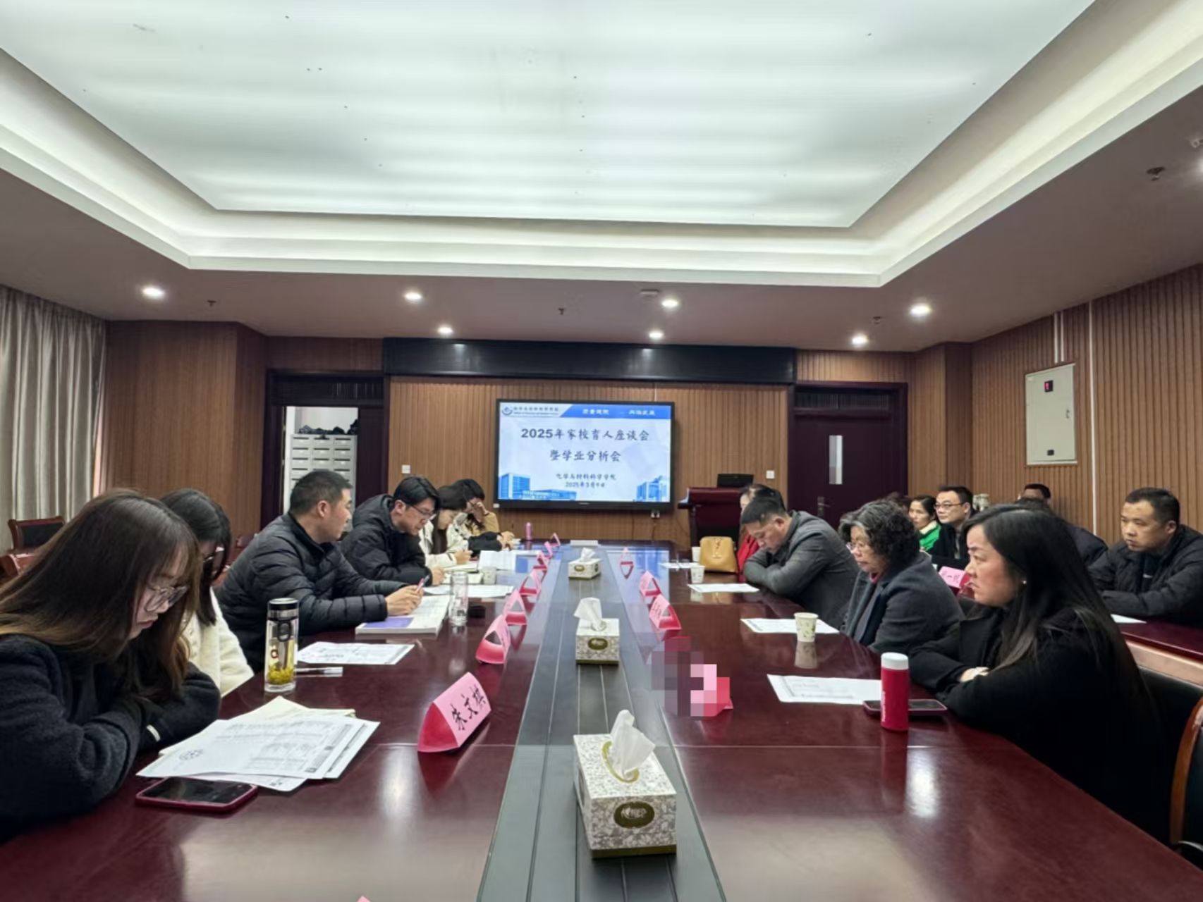 在礼勤楼702会议室召开2025年家校育人座谈会暨学业分析会。学院教学副院长崔鹏、各年级辅导员及2021、2022、2023、2024级学业预警的20余名学生家长出席会议,会议由学院党委副书记李古州主持。