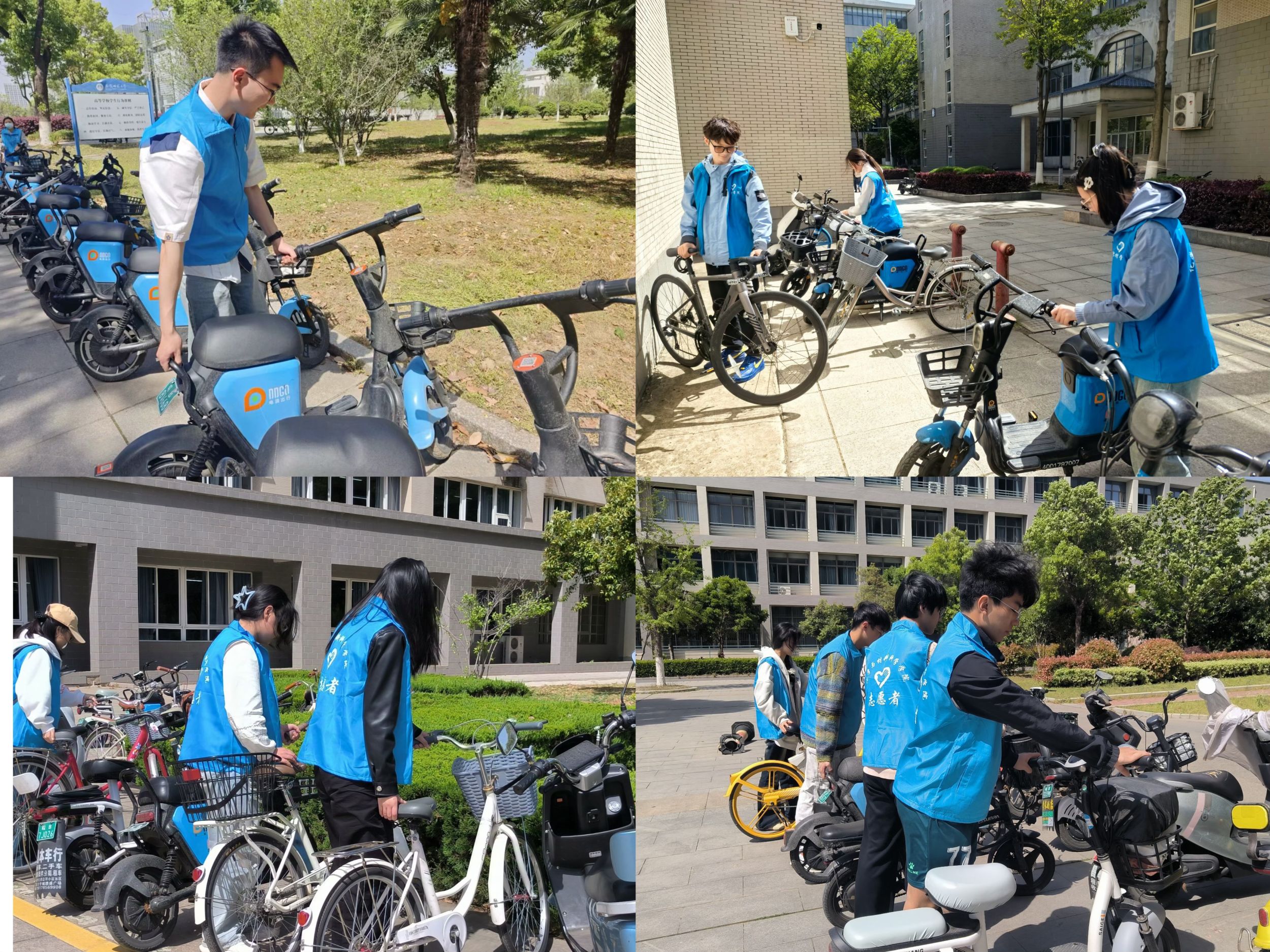 4月13日中午,全体学员分批次前往礼勤楼、教学楼等地点,开展志愿服务实践活动,积极响应学校大学生“六个文明”教育实践专项活动及校园非机动车管理工作。