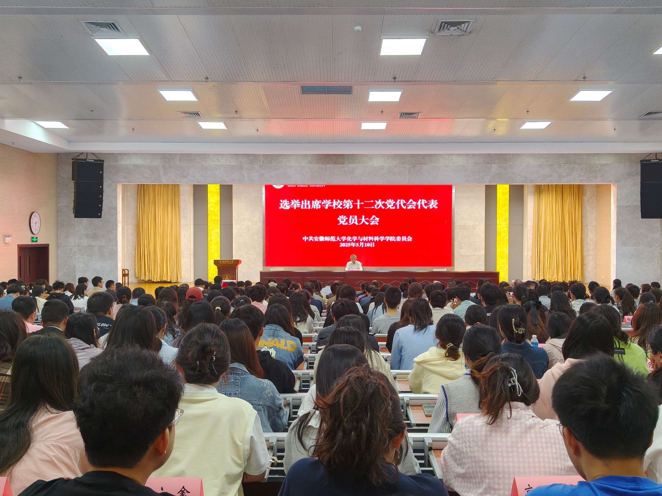 于花津校区实习实训中心一楼报告厅召开全体党员大会,选举产生出席学校第十二次党代会的代表,学院党委书记梁齐军主持会议,会议在庄严的国歌声中拉开帷幕。