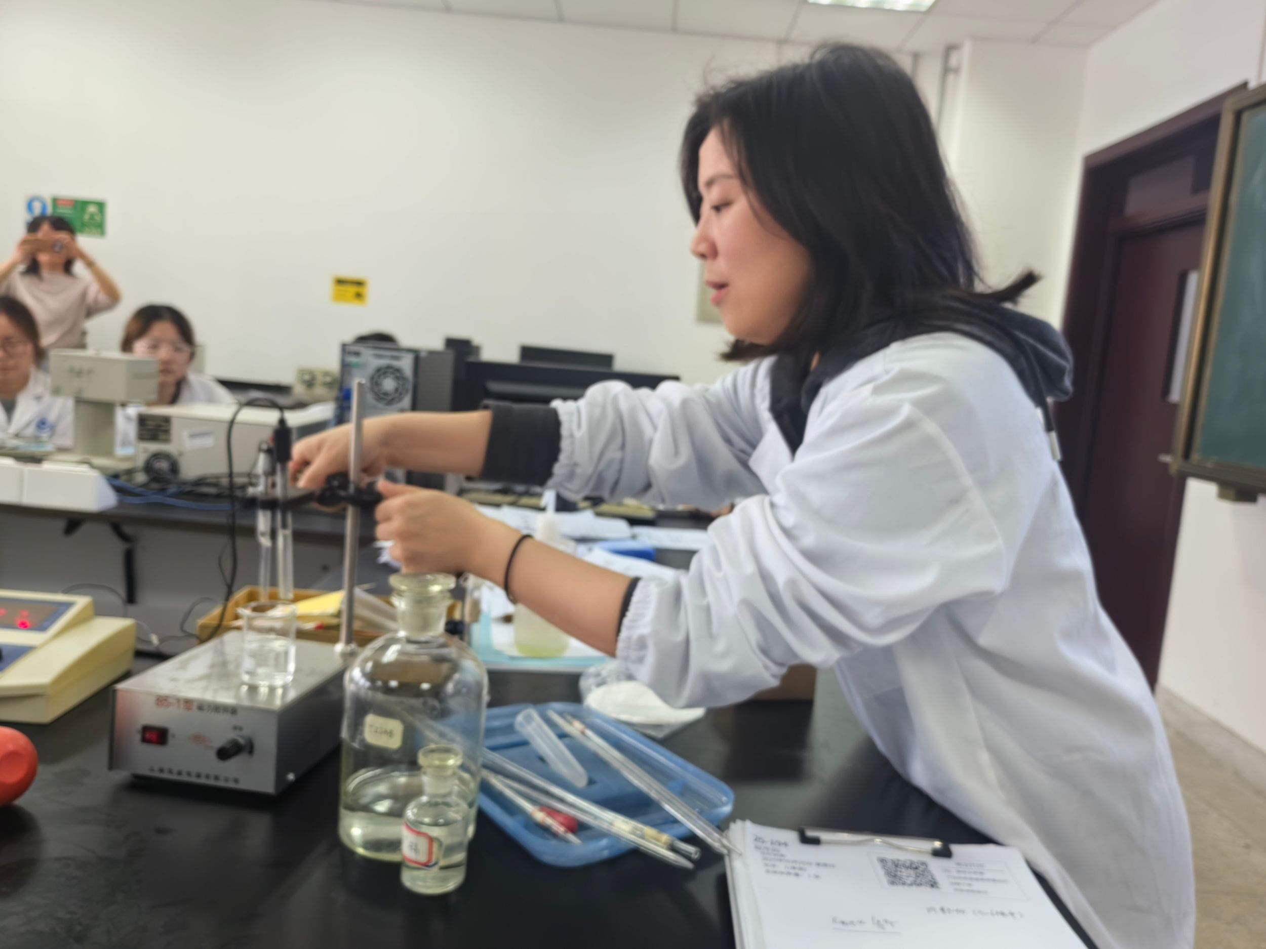 王广凤教授在礼勤楼413-414室为2023级化学(师范)1班与7班的同学们上了一堂“氟离子选择性电极测定水样中的氟含量”实验教学公开课。学院教学督导组、分析化学课程群的多位教师及青年教师参加了本次教学观摩活动。