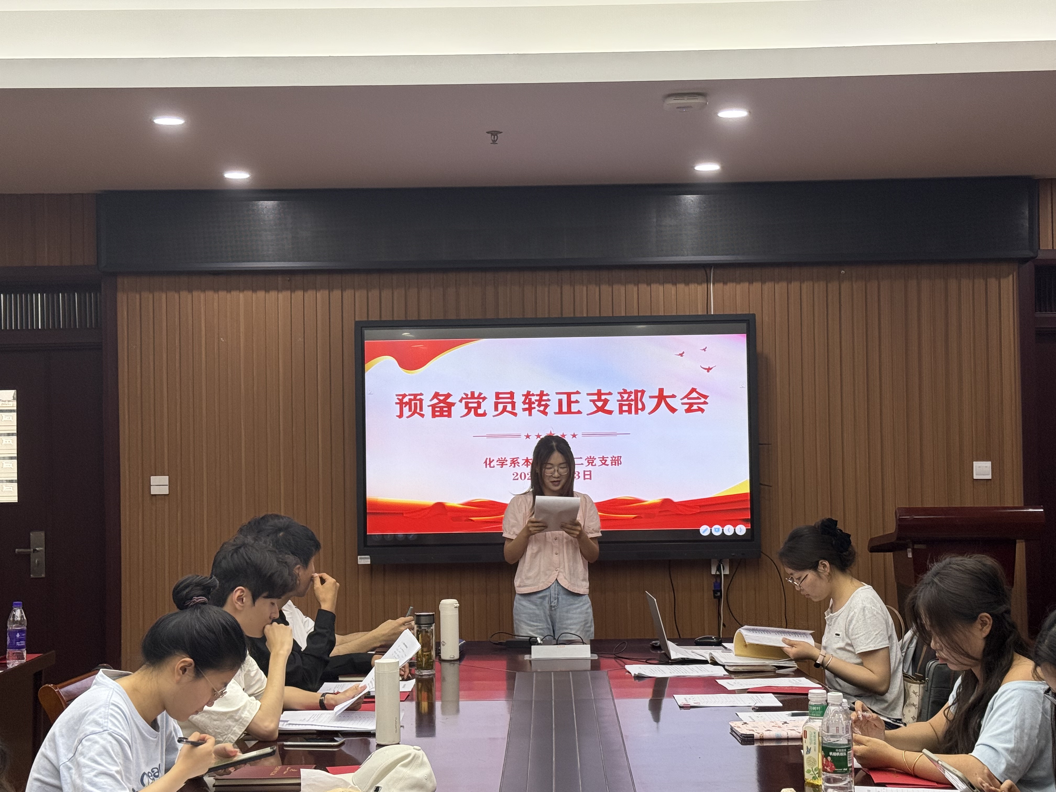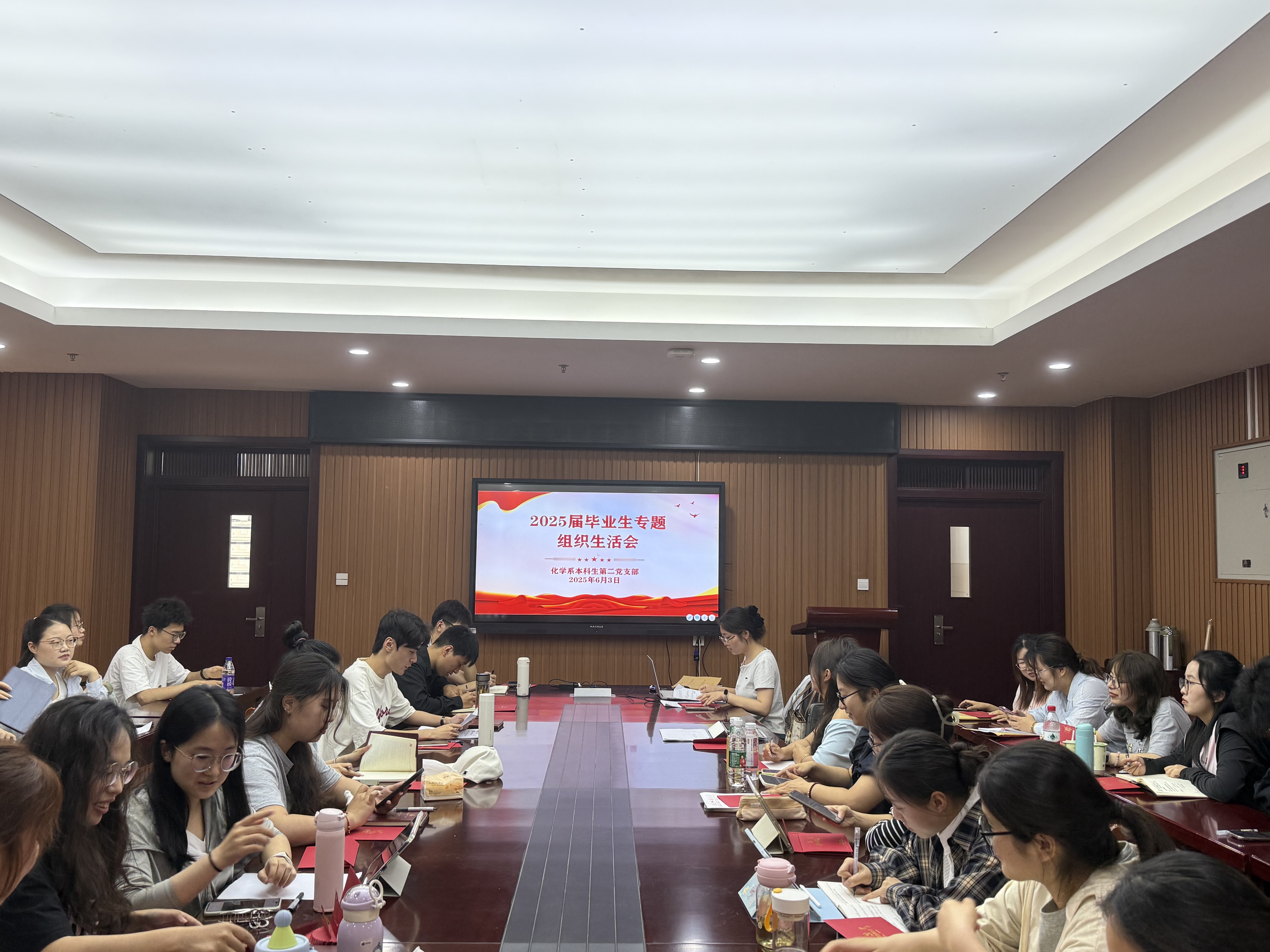杨妍、陶勇)2025年6月3日下午,化学系本科生第二党支部于礼勤楼702会议室召开了2025届毕业生党员教育专题组织生活会暨党员发展支部大会,学院党委副书记、纪委书记李古州列席指导,会议由支部书记陶勇主持。