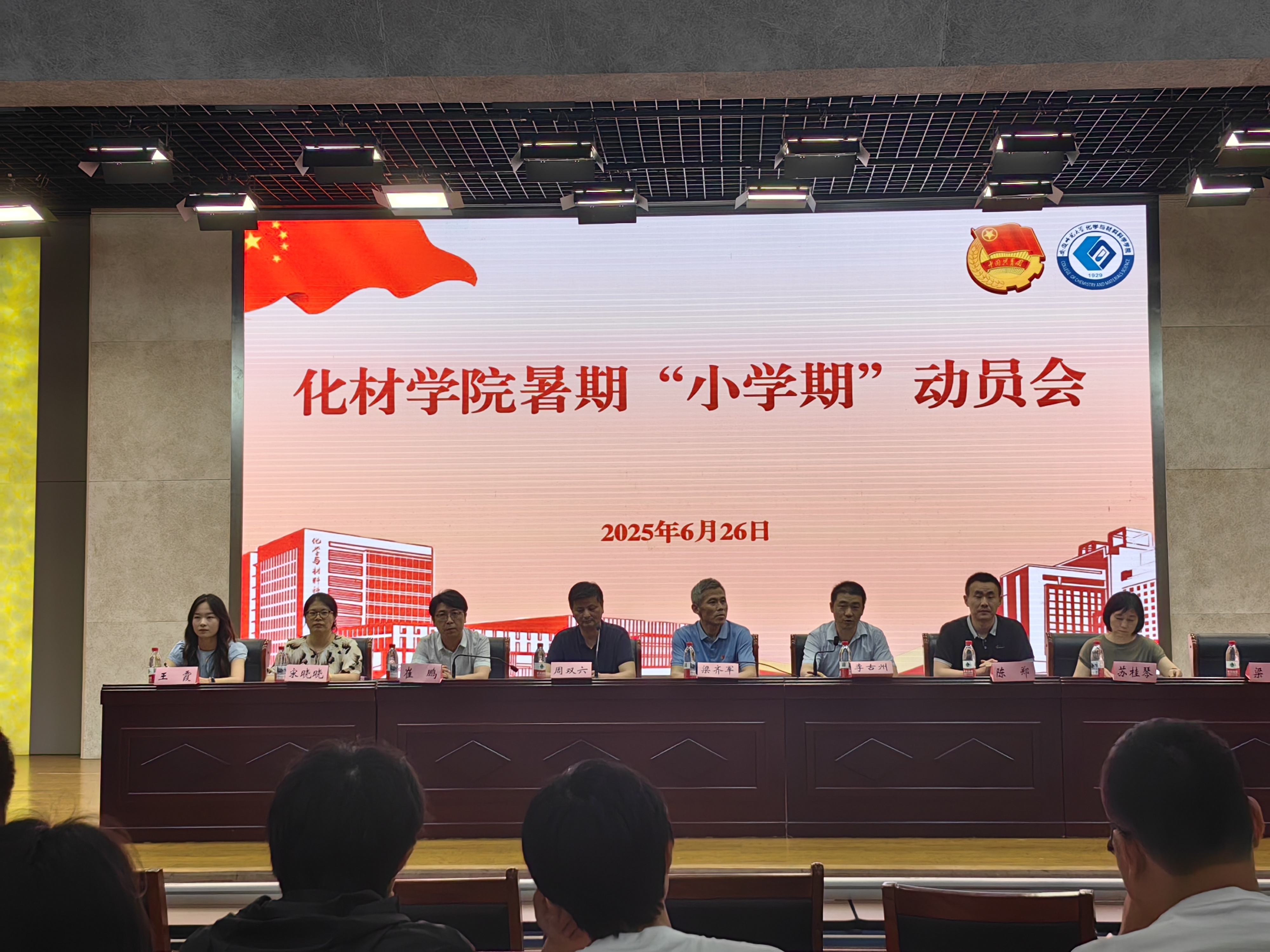 在理科大楼报告厅开展暑期“小学期”学生动员会。学院领导班子、教学秘书、辅导员以及参加小学期的全体学生参加会议,会议由学院党委副书记李古州主持。会上,副院长、化学系主任陈郑从实施目标、教学安排、课程考核、金牌师范生、金牌教案、金牌教练等方面向参会同学详细解读了暑期小学期实施方案。崔鹏强调,小学期作为一门必修课程,是师范生提升师范技能的重要实践环节。他指出,师范生需着力完成从“学生”到“师范生”再到“教师”的角色递进转变,同时要注重科学运用人工智能工具赋能教学能力提升,为未来教育教学工作筑牢专业根基。李古州对留校参与小学期的同学们提出殷切期望,要强化安全意识,严格服从教学安排,严守课堂纪律;要以端正态度投入实训,坚持目标导向主动提升自我;要通过小学期的实践锤炼,完成从“不敢讲”到“讲得好”的能力跃升,展示师范生的精神风貌。