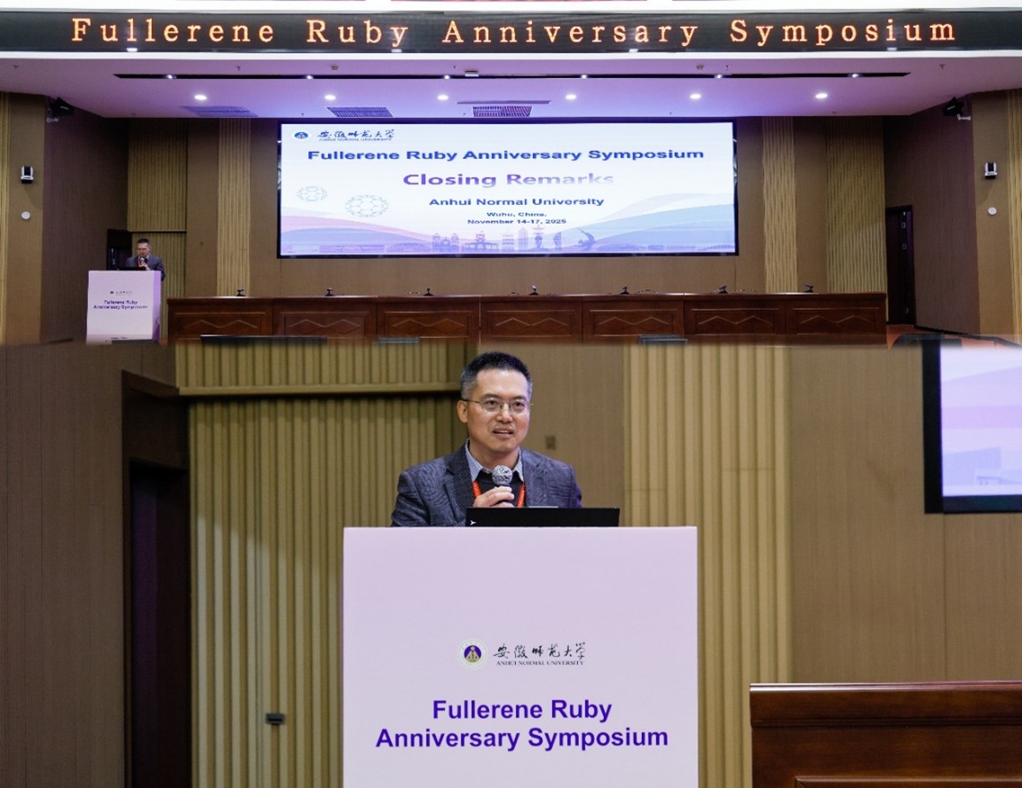 11月15日上午至11月17日上午,大会围绕富勒烯的发现、合成以及应用等领域开展了深度交流探讨。本次大会共设置了17场大会报告、16场主旨报告、21场邀请报告。郑兰荪院士、谢素原院士、Koichi Komatsu教授、Takeshi Akasaka教授、Luis Echegoyen教授、Nazario Martín教授、Hiroshi Imahori教授、Dirk M. Guldi教授、Yutaka Matsuo教授、Xavi Ribas教授、杨世和教授、王春儒研究员、甘良兵教授、杨上峰教授、卢兴教授、魏先文教授、王官武教授分别做了大会报告。郑兰荪院士特别就富勒烯的发现历程以及学科交叉在科学发展中的重要作用向与会者做了倾情分享和心得体会;谢素原院士介绍了富勒烯作为电子缓冲剂在铜促进的常压下选择性加氢制乙二醇方面的前沿研究工作。