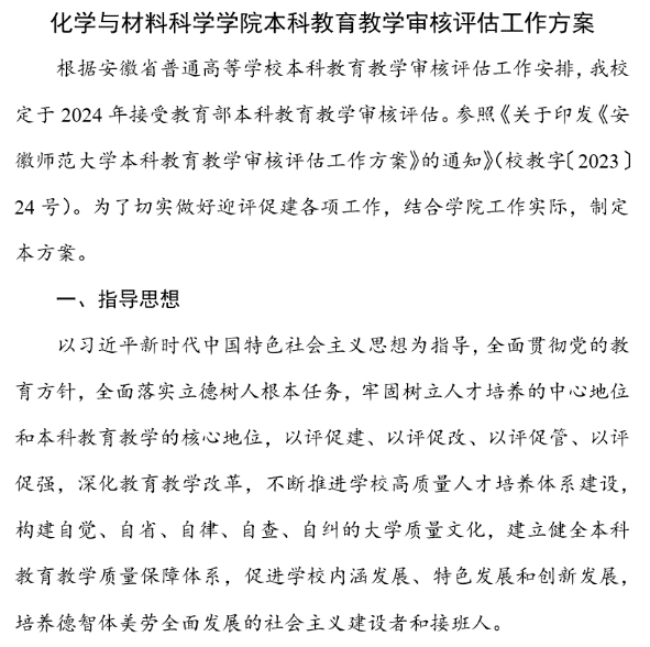 本科教育教学审核评估工作方案》的要求制定学院工作方案,落实落细评建具体任务,有序推进评估各项工作开展,按时完成学院自评报告。